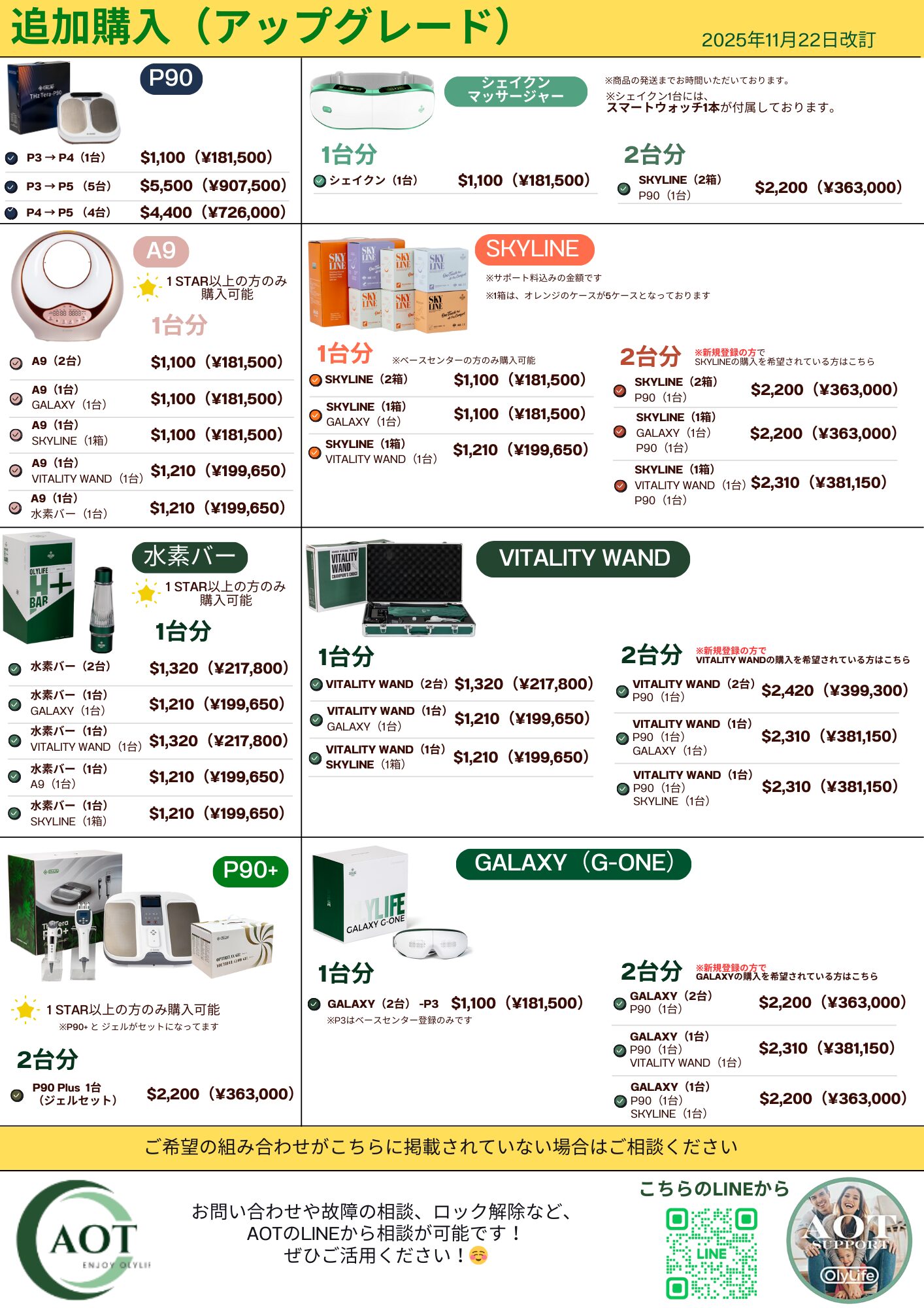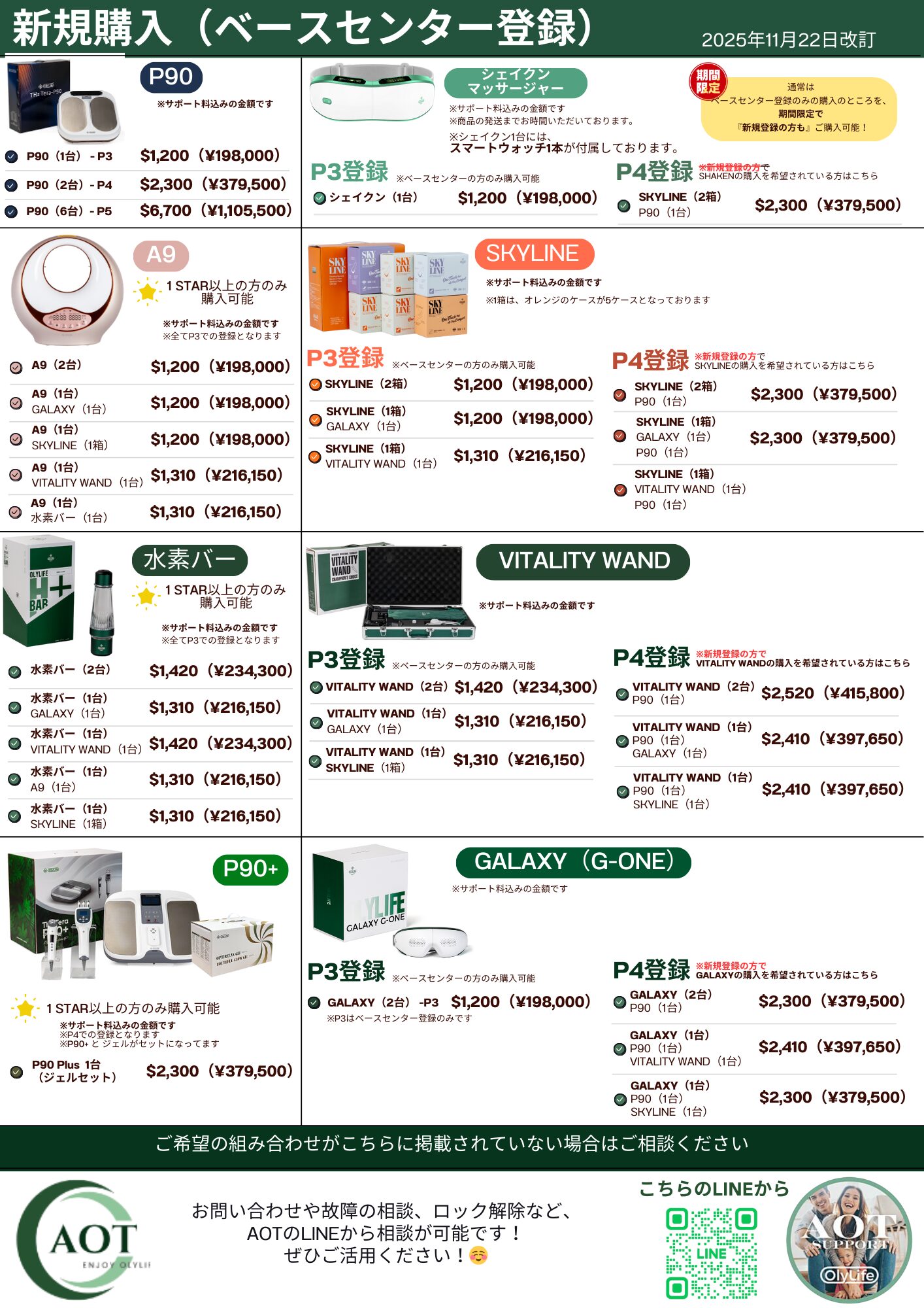 新規申請 2025-02-28 by olylife-admin 会員情報 必須登録の種類 新規登録ベースセンター登録 任意メインポジションID 必須会員名 必須会員名(ふりがな) 必須会員名(ローマ字) 必須性別 男性女性 必須生年月日 ※数字のみでご入力ください。入力いただきましたものは初期パスワードとして設定されます。 必須本人確認書類種別 パスポート免許証番号健康保険証その他 任意その他を選択の場合、詳細をご記入ください 必須身分証番号 必須メールアドレス 必須メールアドレス確認用 ※確認のためもう一度同じメールアドレスを入力してください。 必須電話番号 必須郵便番号 必須住所 ※法人名は記載しないでください。 お届け先情報 必須お届け先の住所について 登録住所と同一お届け先住所は異なる※お届け先住所が、登録住所と異なる場合は、下記にてお届け先住所をご記入ください。 任意郵便番号 任意お届け先住所 ※法人名は記載しないでください。 任意受取人名 任意電話番号 購入商品について 必須会員種別 P3(1台)P4(2台)P5(6台) 必須今回購入するP90 0台1台2台3台4台5台6台 必須今回購入するG-one(GALAXY) 0セット1セット2セット3セット4セット5セット6セット 必須今回購入するVITALITY WAND 0セット1セット2セット3セット4セット5セット6セット※ベースセンター登録または、P4以上の登録の場合のみ選択可能 必須今回購入するSKYLINE 0セット1セット(2箱)2セット(4箱)3セット(6箱)4セット(8箱)5セット(10箱)6セット(12箱) 必須今回購入するシェイクン(先行予約受付) 0台1台2台3台4台5台6台※GALAXYやVITALITY同様、ベースセンター登録またはP4登録からご登録可能となっております。※先に登録させていただきますが、商品のお届けは商品発売後となっております。※販売時期は年内を予定しております。 組み合わせ購入希望の場合 任意P3の場合 VATALITY WAND 1台 + G-one(GALAXY) 1台:$1310SKYLINE 1箱 + VATALITY WAND 1台:$1310SKYLINE 1箱 + G-one(GALAXY) 1台:$1200 任意p4の場合 P90 1台 + G-one(GALAXY) 2台:$2,300P90 1台 + VITALITY WAND 2台:$2,520P90 1台 + G-one(GALAXY) 1台 + VITALITY WAND 1台:$2,410P90 1台 + G-one(GALAXY) 1台 + SKYLINE 1箱:$2,300P90 1台 + SKYLINE 1箱 + VITALITY WAND 1台:$2,410 任意1STAR以上の方の場合 A9 2台:$1,200(P3)A9 1台 + G-one(GALAXY) 1台:$1,200(P3)A9 1台 + SKYLINE 1箱:$1,200(P3)A9 1台 + VITALITY WAND 1台:$1,310(P3)A9 1台 + 水素バー 1台:$1,310(P3)水素バー 2台:$1,420(P3)水素バー 1台 + A9 1台:$1,310(P3)水素バー 1台 + G-one(GALAXY) 1台:$1,310(P3)水素バー 1台 + SKYLINE 1箱:$1,310(P3)水素バー 1台 + VITALITY WAND 1台:$2,300(P4)P90 plus(ジェルセット)1台:$2,300(P4) 料金表 決済方法について 必須支払い方法 クレジットカード(VISA・MASTER)USDT現金振込ポイント(ボーナス)払い 必須お支払を証明するデータの添付 ※お支払を証明するスクリーンショットを添付してください。 ※ポイント払いの場合は、ポイントがあることがわかるスクリーンショットを添付してください。 任意お支払を証明するデータの添付 ※複数枚に分かれる場合はこちらにアップロードしてください。 任意お支払を証明するデータの添付 ※複数枚に分かれる場合はこちらにアップロードしてください。 ポイント払いの場合:支払者の情報をご入力ください(3名まで記入可) 1人目 任意会員ID 任意ログインパスワード 任意お名前(ローマ字) 任意支払額 2人目 任意会員ID 任意ログインパスワード 任意お名前(ローマ字) 任意支払額 3人目 任意会員ID 任意ログインパスワード 任意お名前(ローマ字) 任意支払額 決済方法ごとの注意事項 クレジット決済について 事前準備 カード決済に入る前に、カード会社へ電話連絡して海外ロックの状況を確認して下さい。 海外ロックが掛かっている場合『今から海外(マレーシア)で約20万円の買物をするので、海外ロック(セキュリティ)の解除をして欲しい』と伝えて解除手続きを行って下さい。 ロックの解除には最短30分~最大20時間以上かかる場合があります。 カード決済入力フォーム 入力フォームはこちら 決済する会員ID EA297961 決済完了後 USDT決済について 注意事項 USDTでお支払いを希望される方は、以下のASTサポートのUSDT送金アドレスへ所定の金額を送信して下さい。 USDTのネットワークはTron/TRC20のみを受け付けております。 現金振込について 注意事項 お振込みの際には必ず登録名義人のお名前でお振込み下さい。登録情報との照合が出来なければ登録が出来ません。 お振込口座情報 GMOあおぞらネット銀行(銀行コード:0310)法人営業部(支店コード:101)普通 1537490(株) アリューション 万が一振込名と登録名が異なってしまった場合 備考に異なる旨をご記入ください。 決済完了後 決済が完了したことがわかる振込明細の写真データ、またはお振込完了後のスクリーンショットをご送付ください。 ポイント払いについて 注意事項 ポイント払いの場合は、【ID】【ログインパスワード】【お名前】【支払額】をご記載ください。3名まで設定可能です。 紹介者情報 必須紹介者ID 必須紹介者氏名 必須紹介者(ローマ字) 必須紹介者携帯番号 必須指定ポジションID 必須指定ポジ